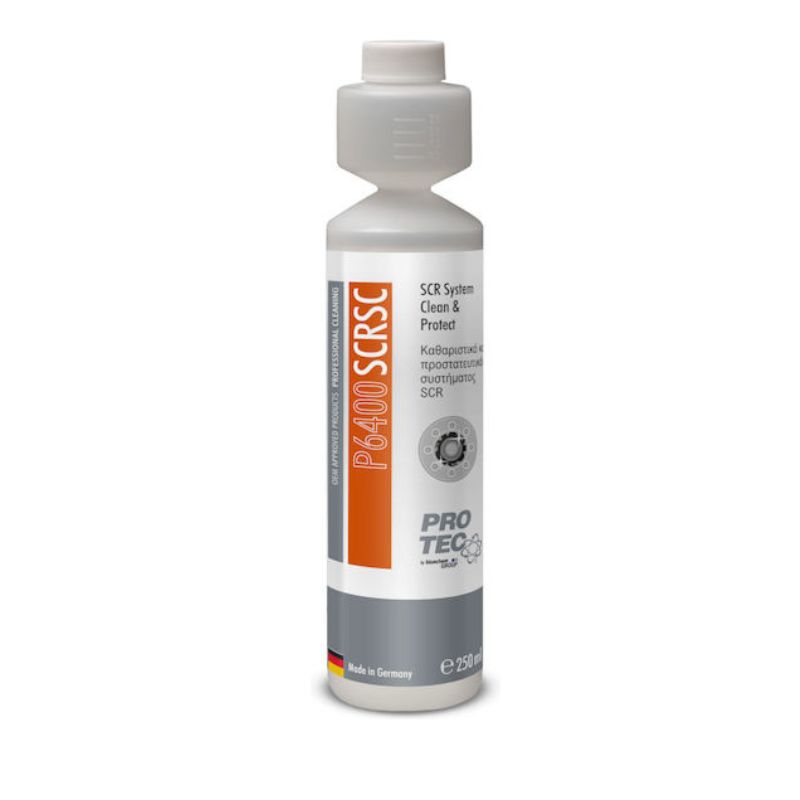 Το “SCR System Clean and Protect (SCRSC) – P6400” αποτελέι ένα ενεργό καθαριστικό για τακτική και προληπτική χρήση σε προβλήματα μόλυνσης του καταλύτη SCR. Aποτρέπει τον σχηματισμό κρυστάλλων και προστατεύει τα μολυσμένα μπεκ του υγρού ουρίας (Ad Blue) . Η απώλεια ισχύος ή οι δυσλειτουργίες του κινητήρα μπορούν έτσι να αποφευχθούν. Xρησιμοποιείται σε όλους τους κινητήρες με μετεπεξεργασία καυσαερίων SCR ξεκινώντας από το πρότυπο καυσαερίων Euro 4. Βελτιστοποιεί το σημείο πήξης του υγρού ουρίας (AdBlue®) ακόμη και σε υψηλά επίπεδα πήξης. Προληπτική λύση που προστατεύει τα συστήματα SCR από τη ρύπανση και το σχηματισμό κρυστάλλων και έτσι διασφαλίζει τη βέλτιστη λειτουργία της μονάδας SCR. Αναμιγνύεται με υγρό ουρίας (AdBlue®)